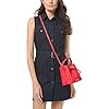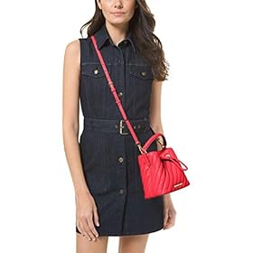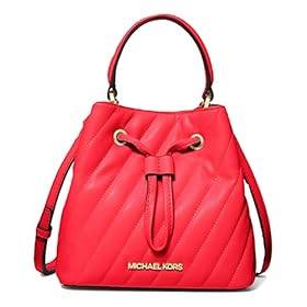 MICHAEL MICHAEL KORS Suri Small Quilted Crossbody Bag Color: Coral MSRP: $398.00 Finished with diagonal quilting, the Suri crossbody bag combines a structured silhouette with polished hardware for a luxe finishing touch. A drawstring closure opens to a spacious interior with two side pockets, so your keys, wallet and more stay organized. With a removable chain strap you can carry it by the top handle or wear it crossbody, depending on your mood. DETAILS Crossbody bag Polyurethane blend 52% polyurethane/48% polyester Gold-tone hardware 7”W X 7”H X 4.5”D Adjustable strap: 20.5”-24.5” Interior details: back slip pocket Lining: 100% polyester Drawstring fastening Imported